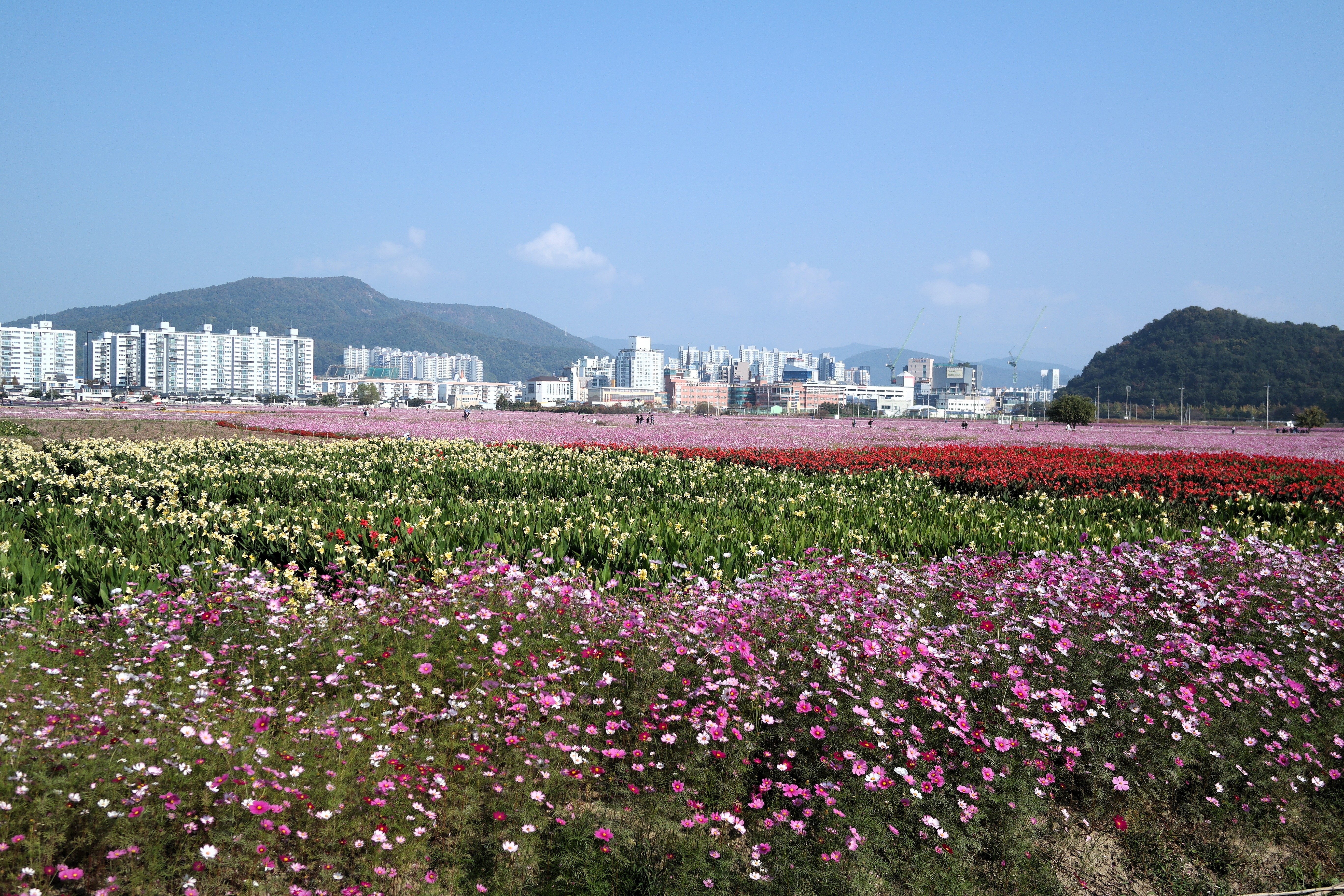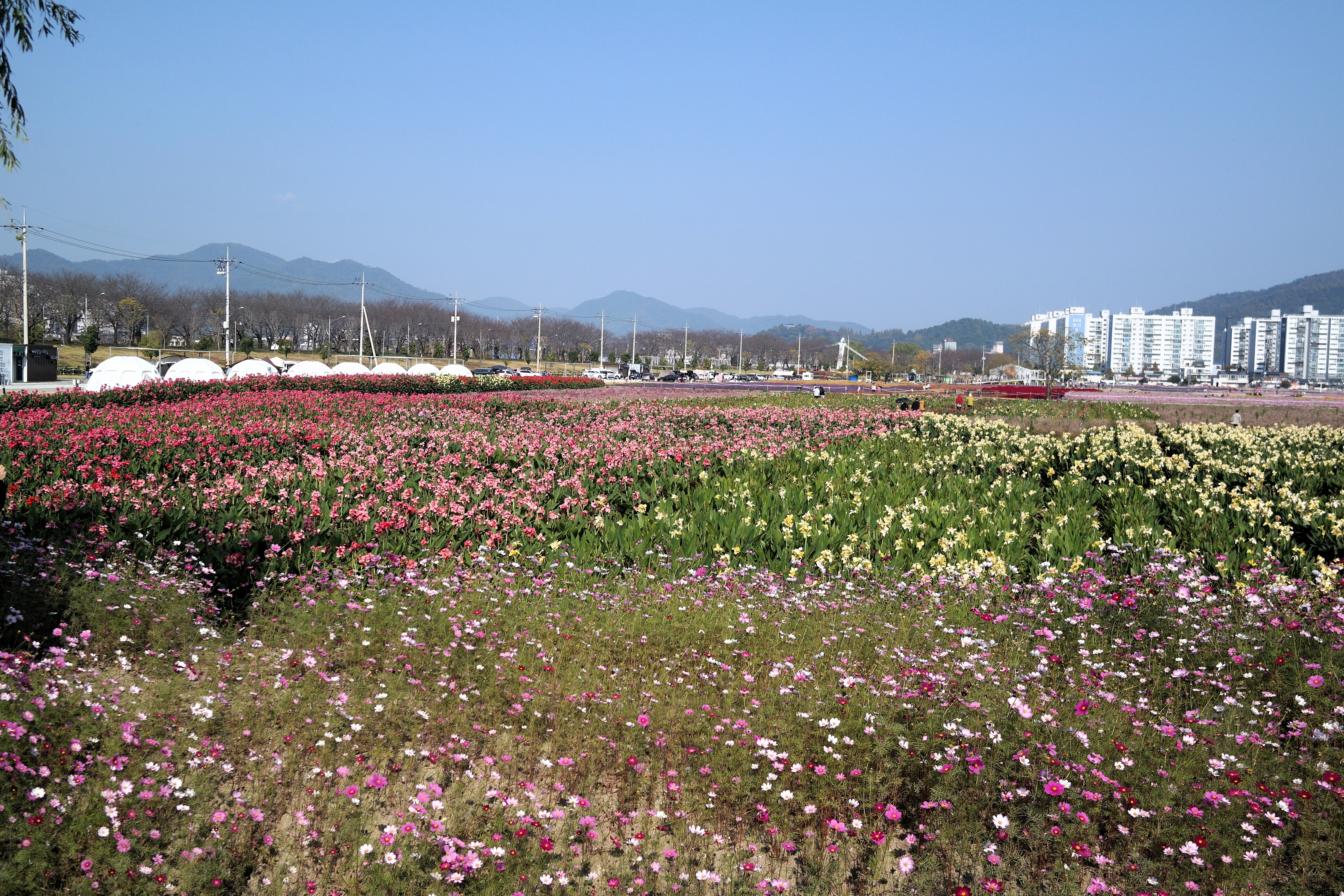 박람회장 주변의 농경지가 화려한 초화류 식재로 경관정원으로 변신한곳.
